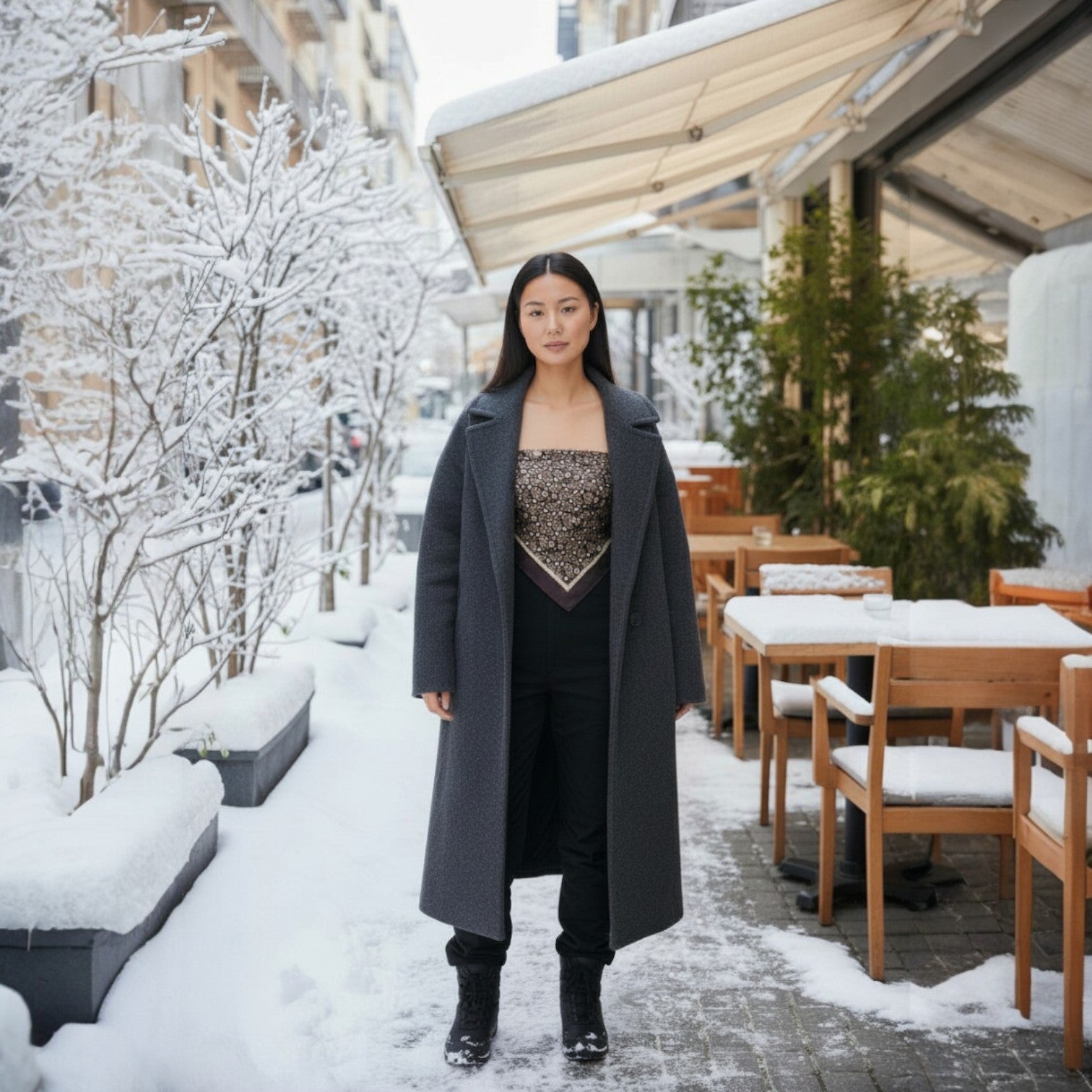 Fås i 45x45 og 90x90 cm – perfekte til hår, taske eller som silketop. Eksklusivt paisleyprint i dybe brune nuancer, designet i København. Tidløs luksus og alsidig styling.